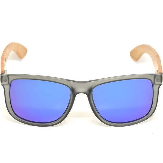 Square Bamboo Wood Sunglasses with Blue Polarized Lenses