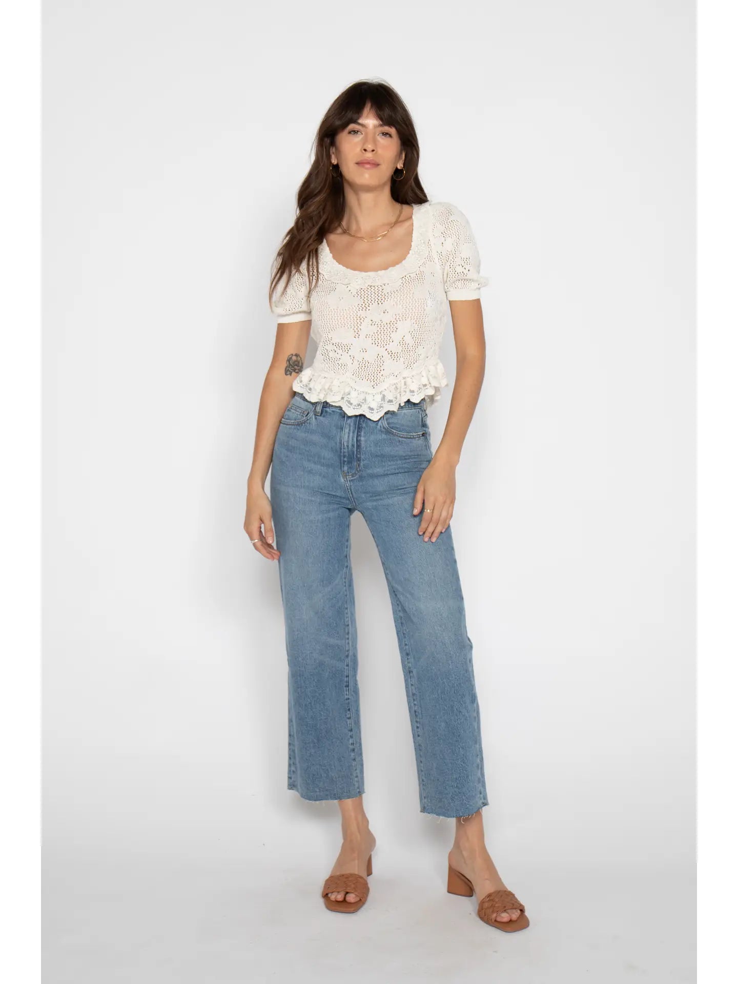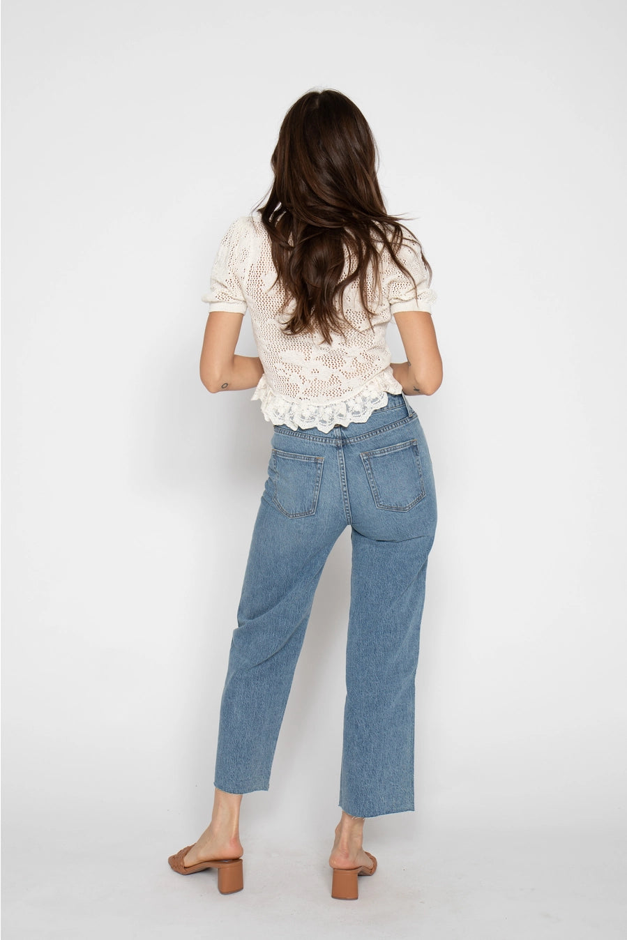Flattering from waist to ankle, these high-rise jeans give your butt the VIP treatment it deserves. Featuring a fitted hip, zipper fly, and a wide leg with a cropped raw hem, they strike the perfect balance between classic and cool. Made sustainably from soft recycled cotton with just the right amount of stretch, they’re comfy enough for your busiest days. Choose between standard and petite rises to get the fit that suits you best. Get ready to turn heads in the Aberdeen Ankle Crop High Rise Jean—your new go-to for vintage vibes and effortless style.