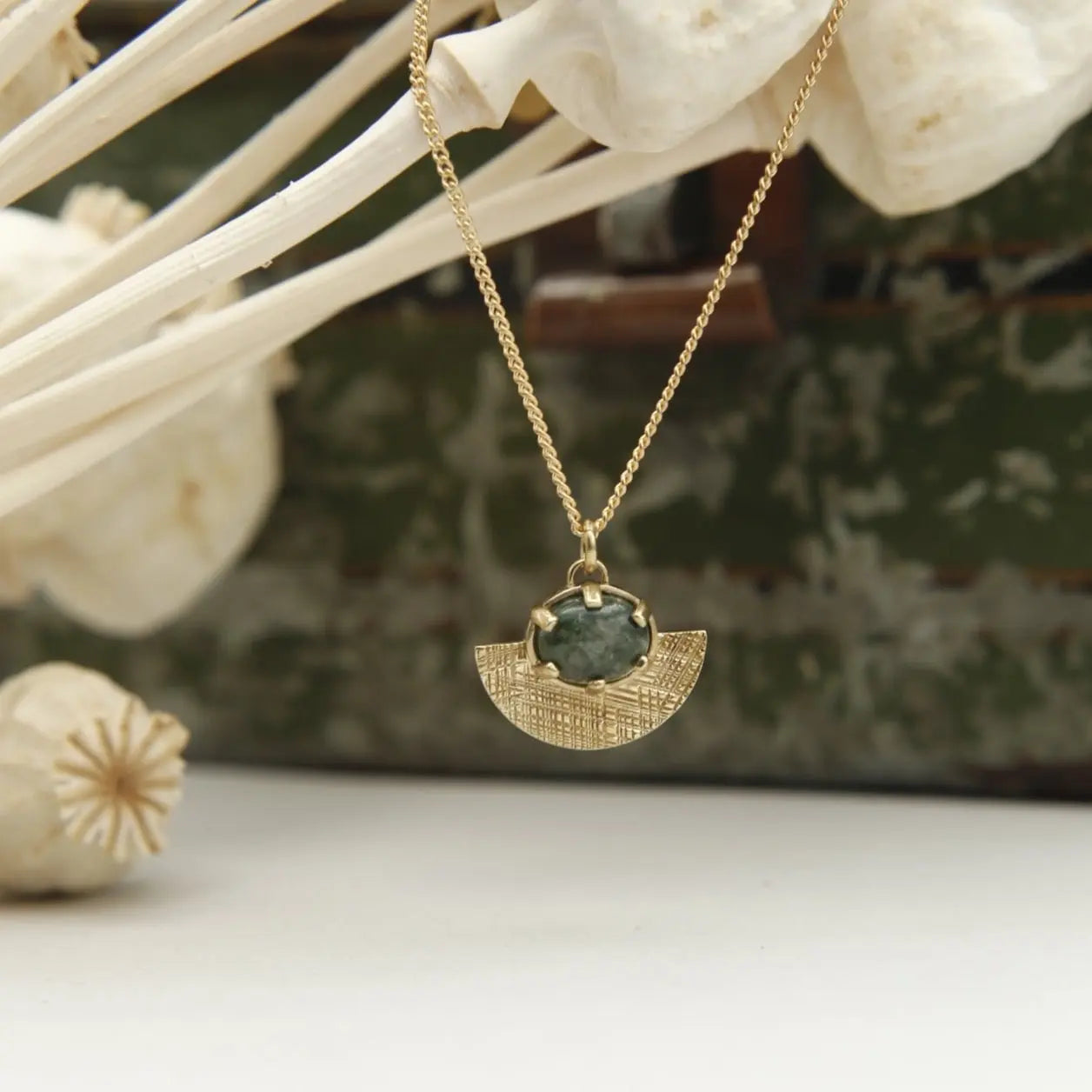 Each delicate bead of moss agate whispers tales of ancient forests and tranquil meadows, capturing the essence of verdant landscapes within its intricate patterns. With hues ranging from deep forest greens to earthy browns, every glance at this necklace is a journey into the heart of nature itself.