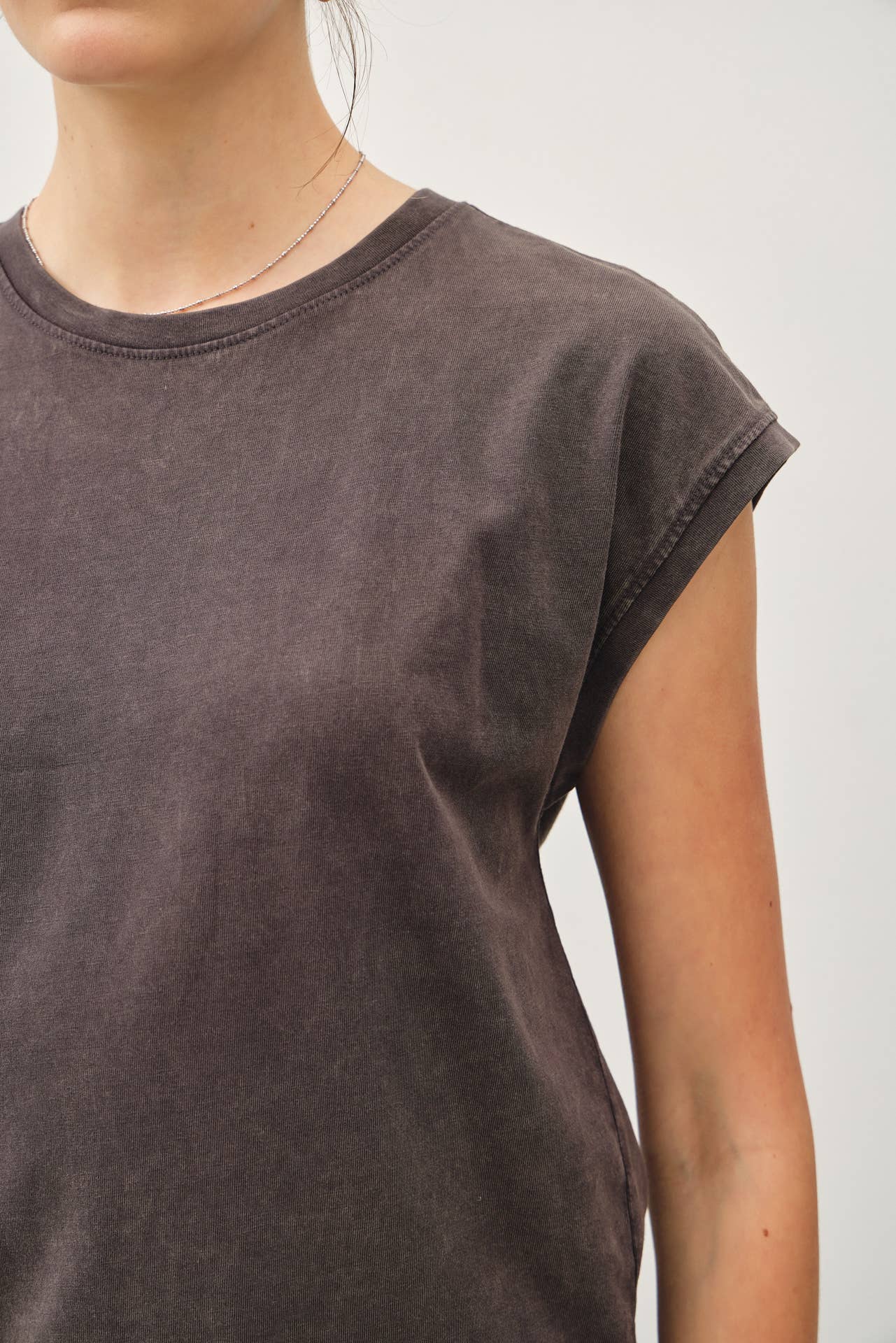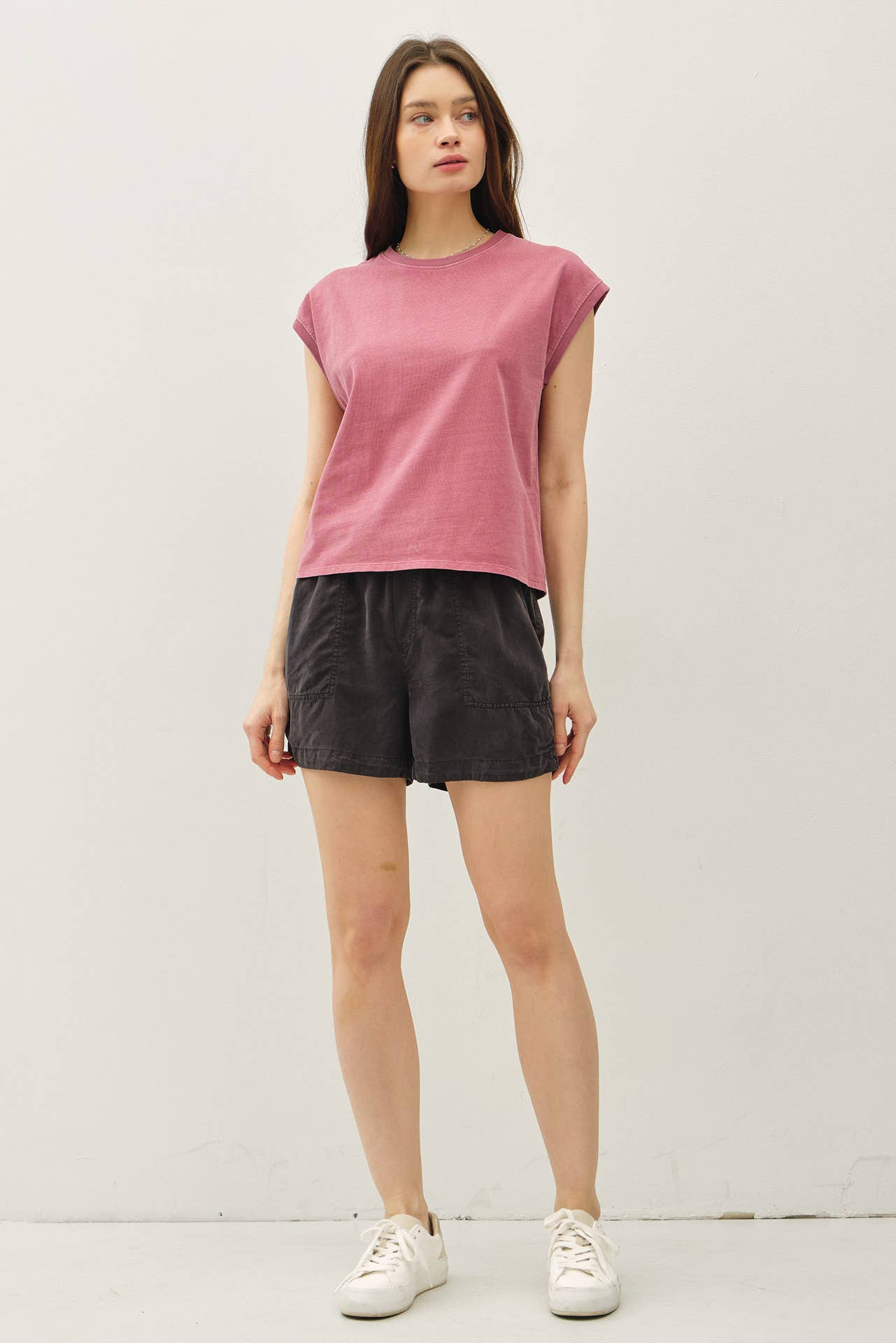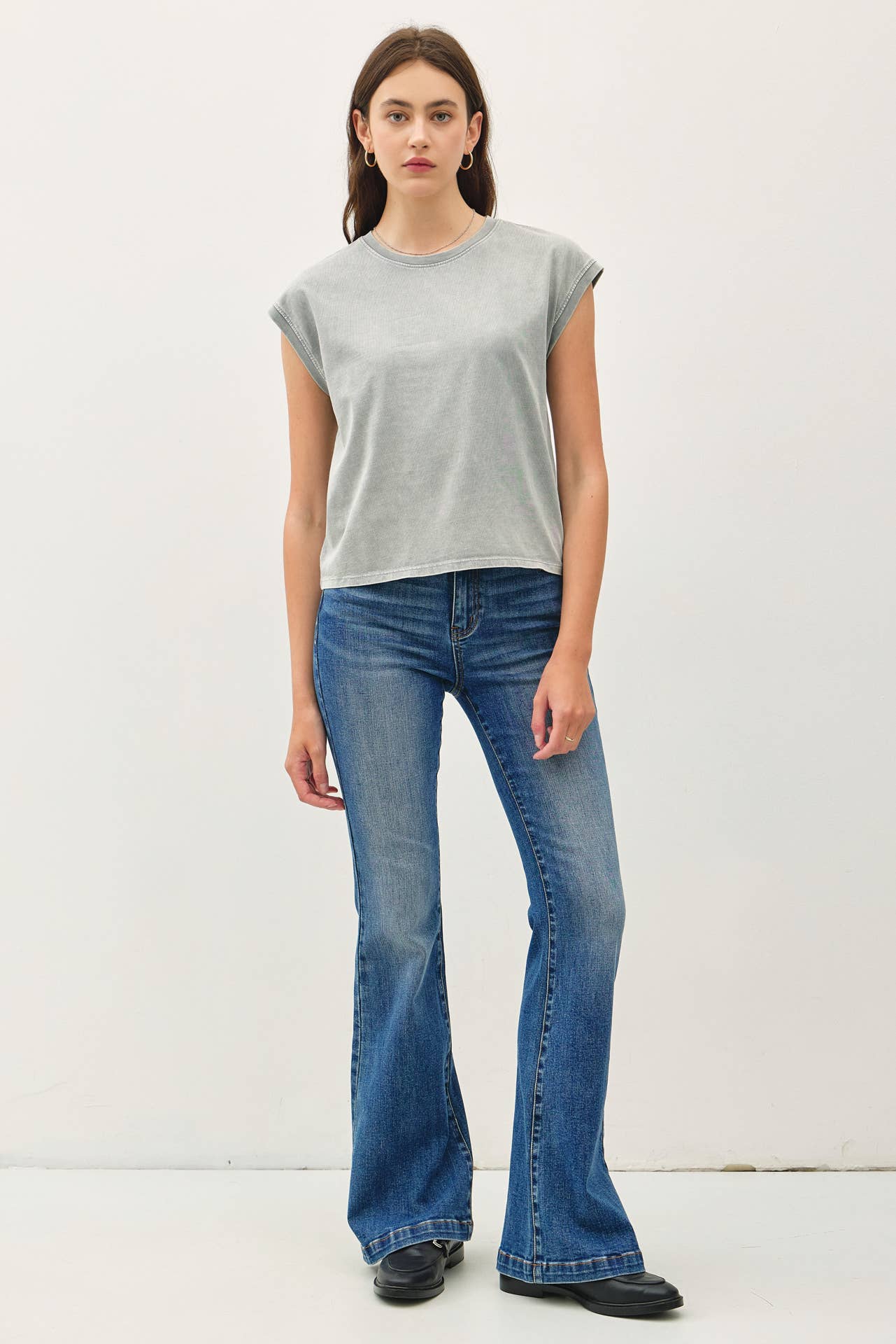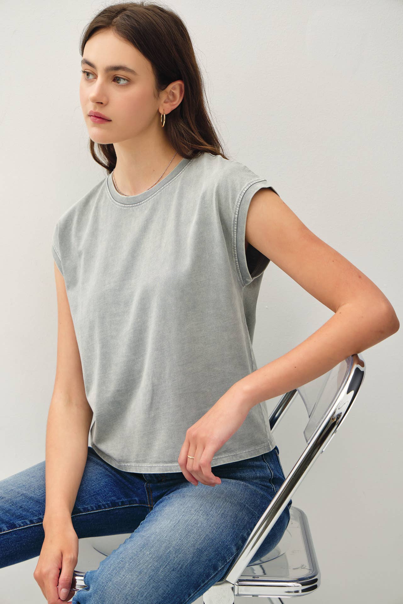 This playful acid wash tee features capped sleeves and a round neck for easy, breezy style. Its relaxed fit and cropped length make it perfect for casual days, while the pullover design keeps it simple and comfy. Add a splash of vintage vibe to your everyday look with this fun, laid-back essential.