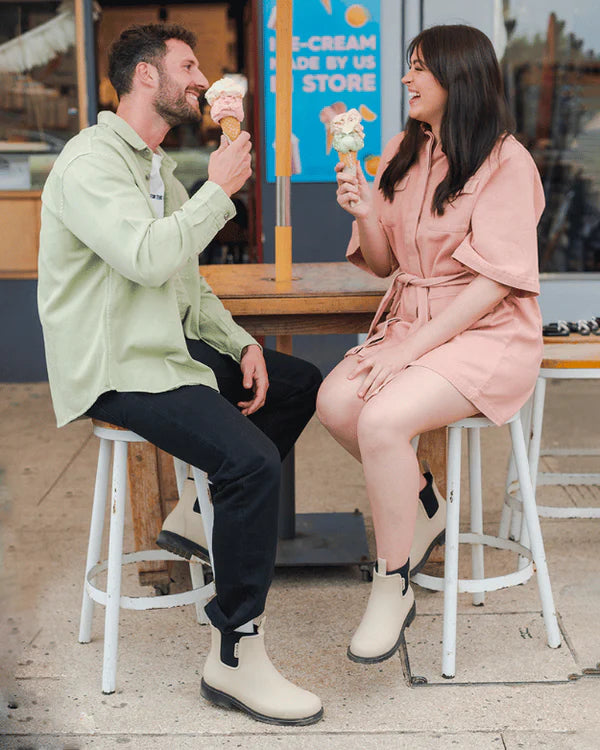 Say hello to Sand! The first cream colored boot, long-requested by the Merry community, has landed ashore. This light ‘n' creamy neutral shade is paired with a contrasting deep black neoprene for an effortless and easygoing look, a go-to colorway for all seasons!