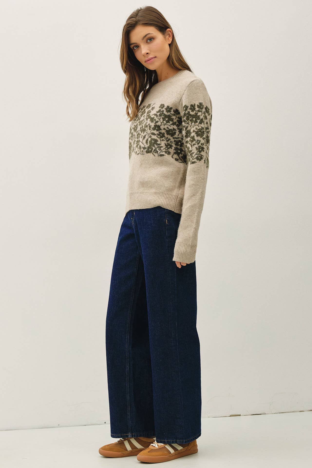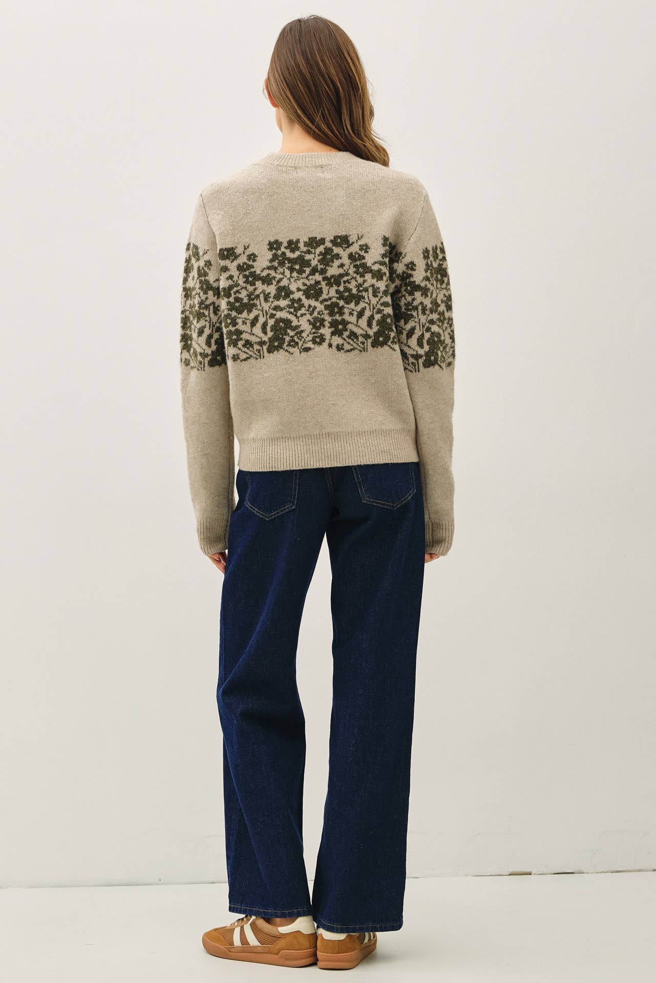 Cozy up in style with the Phoebe Floral Sweater! This lightweight, soft-touch top features a charming floral jacquard accent that adds a playful pop to your look. Its relaxed fit, long sleeves, and round neck make it perfect for breezy days when comfort meets cute.