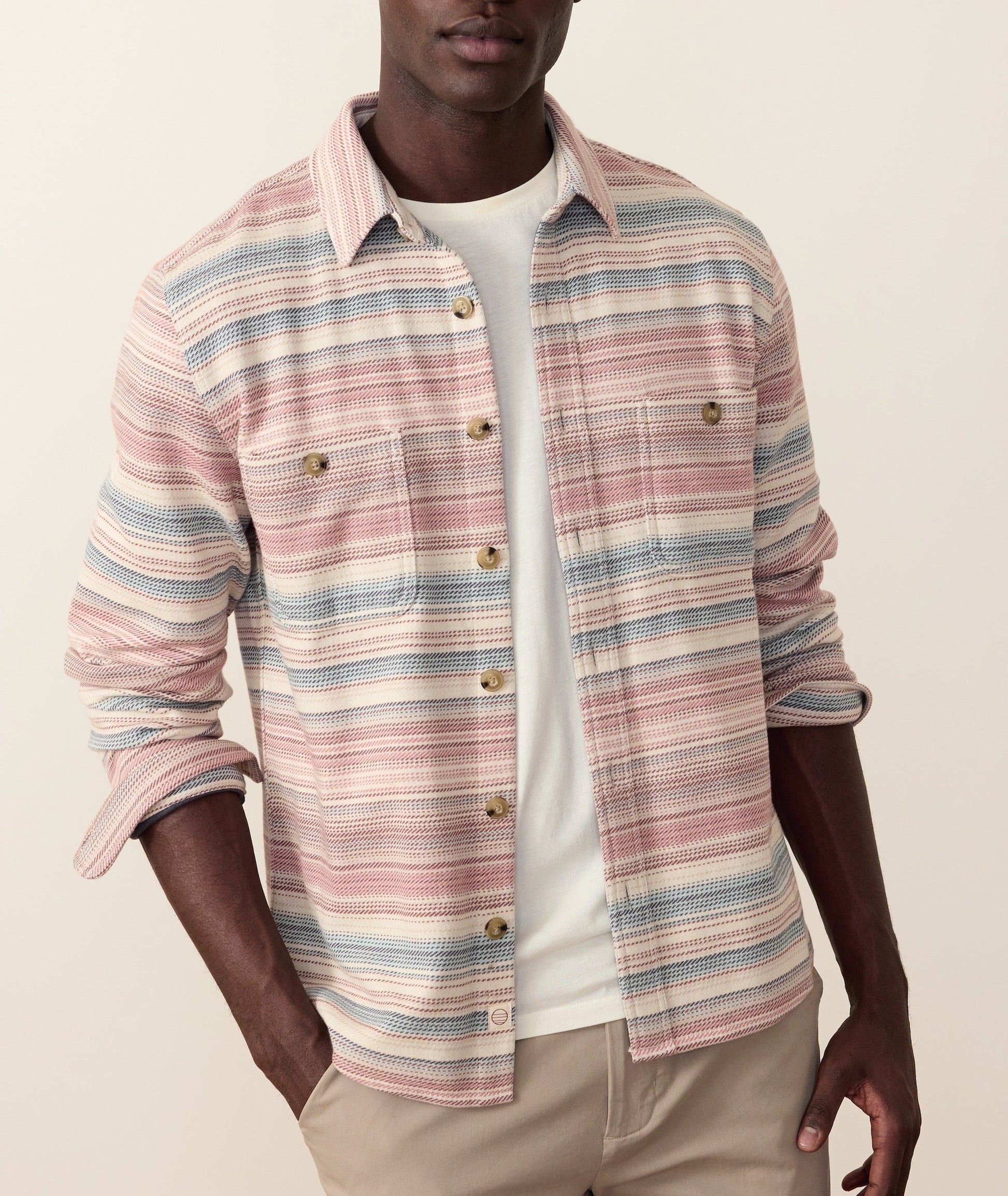 Our fan-favorite style is back for yet another season! The Bradley Pacifica Stretch Twill Long Sleeve Shirt with a Warm Baja Stripe is a bestseller that is wildly soft, incredibly stretchy, and not too structured. It's the perfect weight to wear over a tee during fall and spring, and under a jacket in the colder months. (AKA: you get 9 months of wear out of this bad boy.) It's a masterpiece of an overshirt, if we do say so ourselves!