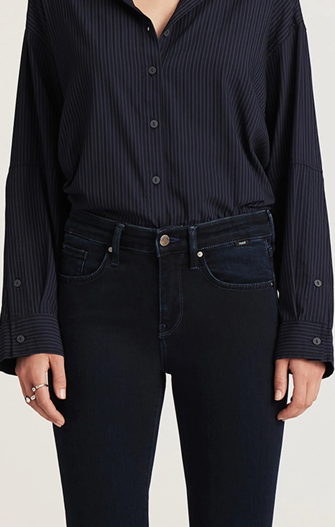 Our Vicky Ink Feather Luxe denim features a flattering bootcut with a leg-lengthening flare that enhances your silhouette. The easy mid rise ensures all-day comfort without compromising style. Crafted from a premium blend including Tencel™ for softness and stretch for a perfect fit, this dark inky blue denim adds a versatile, elegant touch to your wardrobe. Made in Turkey, it combines quality and contemporary design effortlessly.